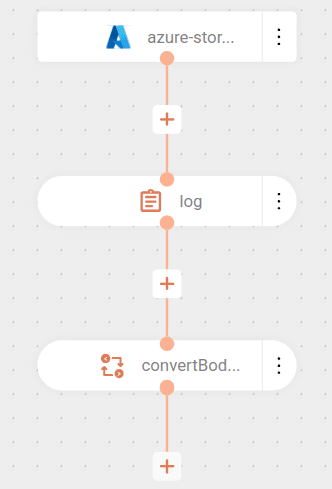 The flow starts by connecting to the my-container container in the Azure account myaccount using the access key provided in a variable. Read about flow variables configuration.