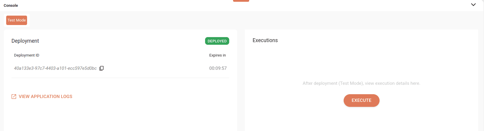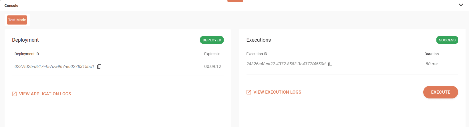 With an active deployment (deployed status), the EXECUTE button becomes available.