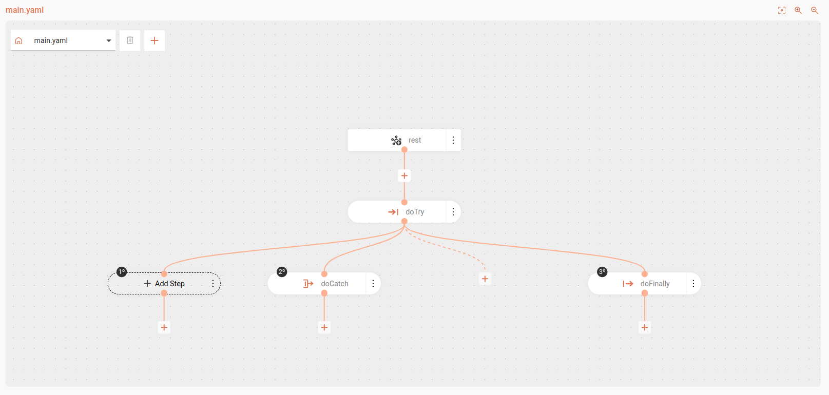 | You can add additional "doCatch" branches by clicking "+" and then Add Handling Step. |